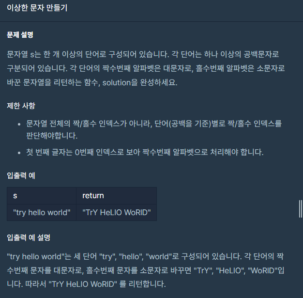 - 각 문자의 인덱스가 짝수이면 해당 문자를 대문자로 변환
